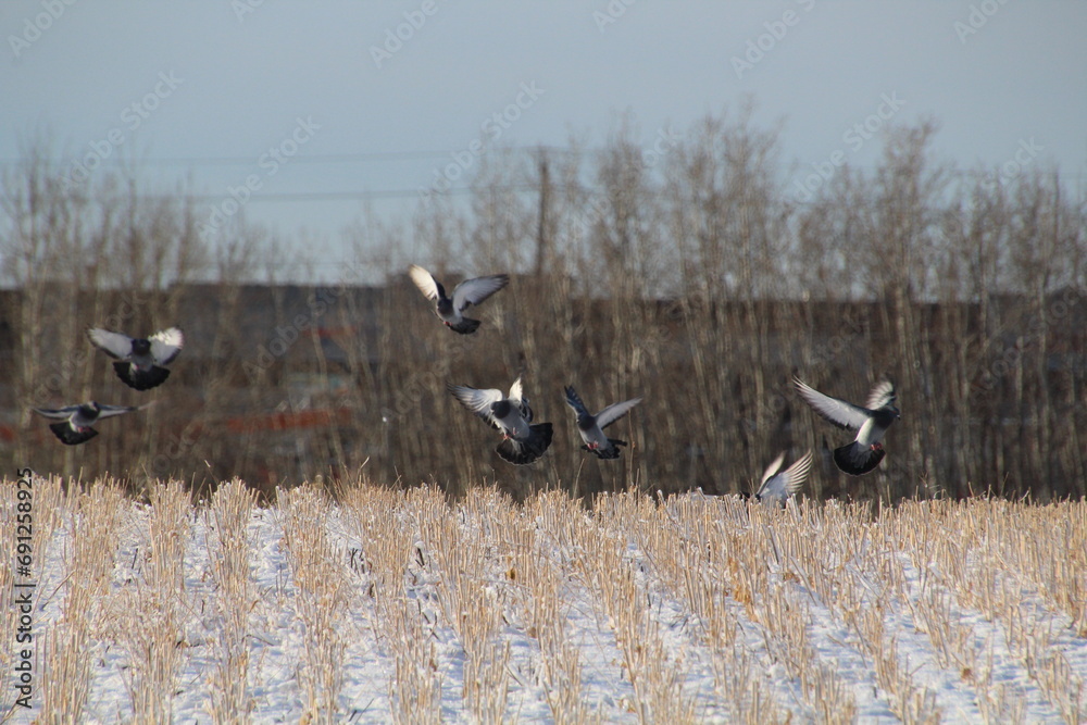 Pigeons Over The Farmers Field, Pylypow Wetlands, Edmonton, Alberta
