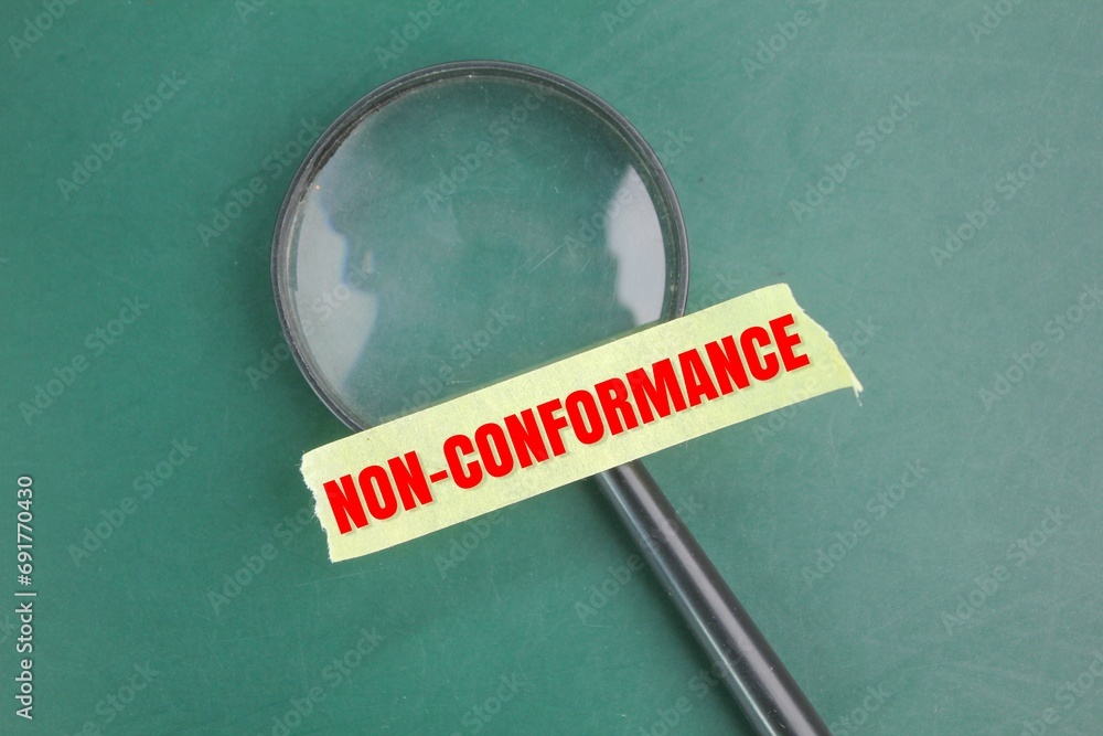 magnifying glass and selotape with the word non-conformance