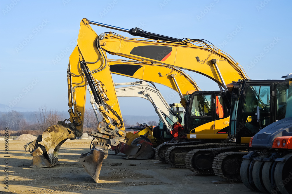 Verschiedene Bagger auf der Baustelle