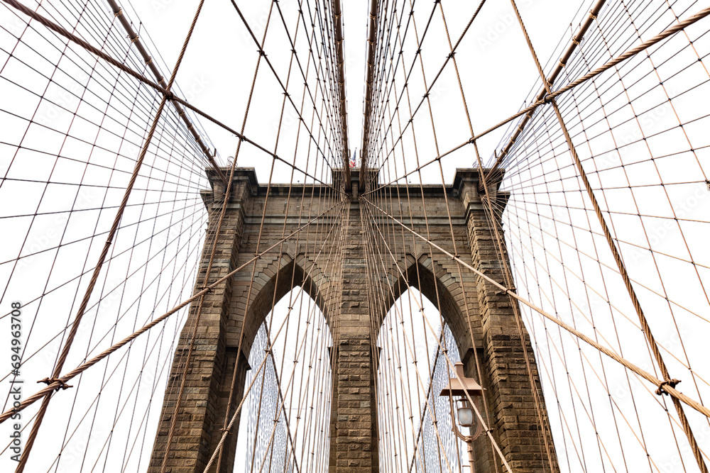 Brooklyn Bridge isolated on white transparent, New York city, Manhattan. PNG