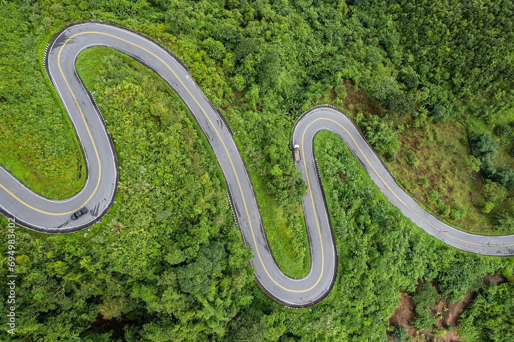 Road on mountain which a lot of road curve very popular landmark for tourist in Nan province, Thailand.