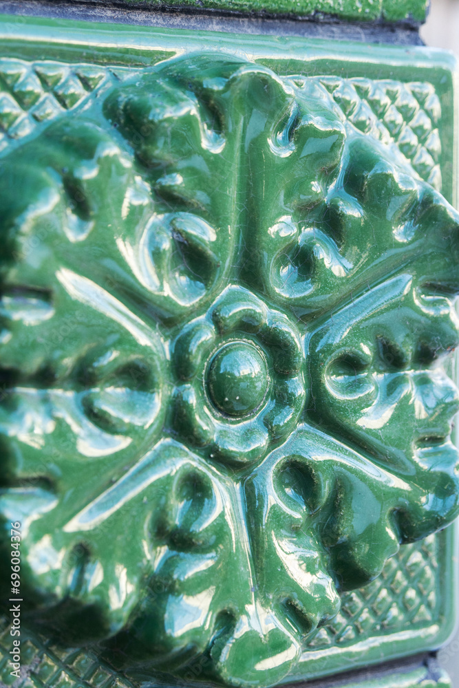 Green wall tile in the shape of a flower.