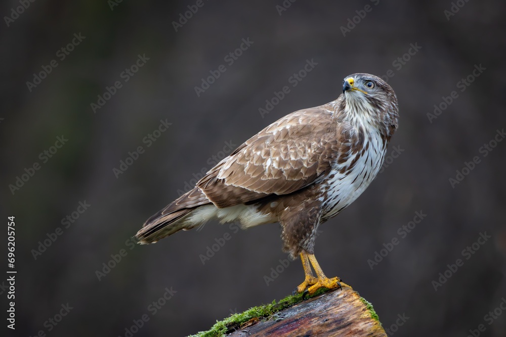 Common Buzzard (Buteo buteo) sitting on a branch. Birds of prey . Wildlife scenery.