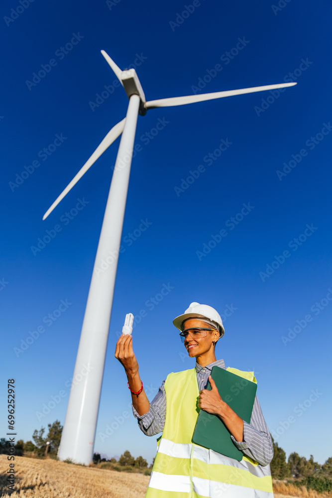 Maintenance engineer working in a wind farm .