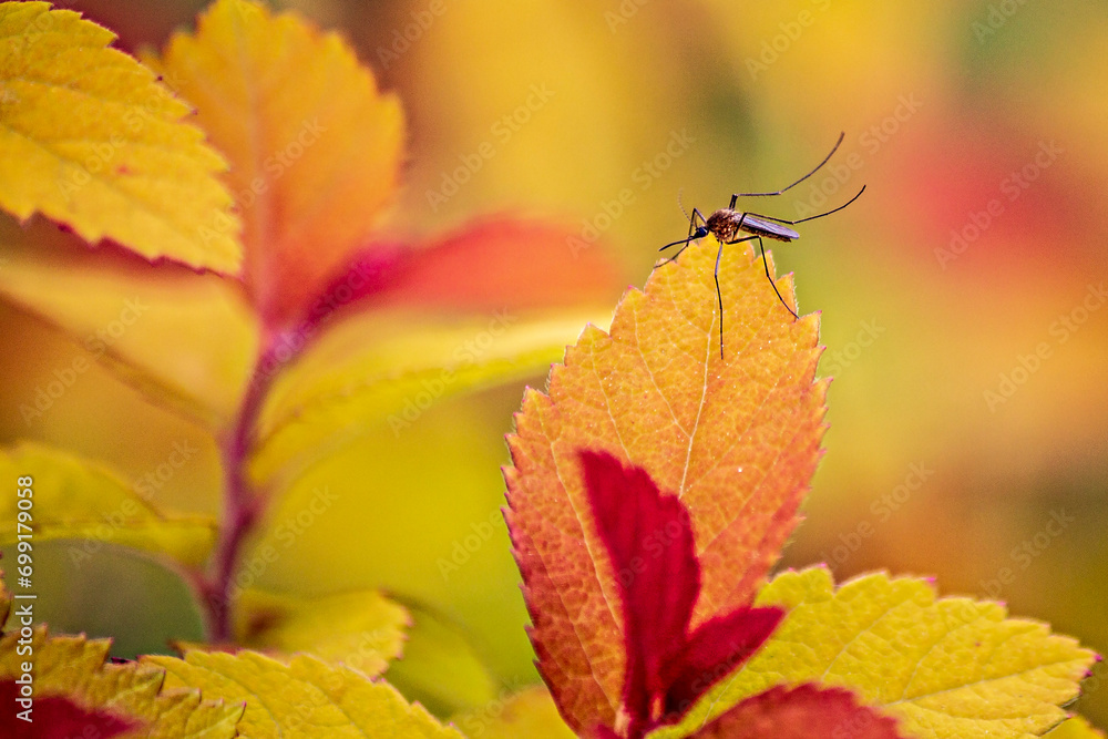 red and yellow autumn leaves and mosquito