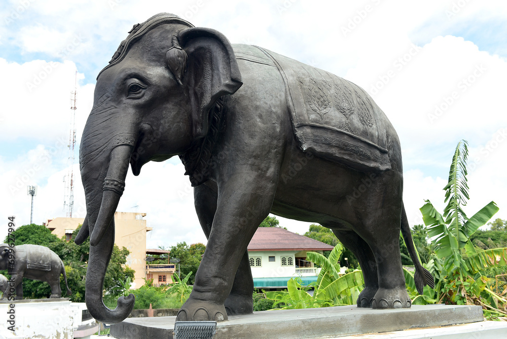 Copper cast bronze elephant on white background with clipping path. Elephant stucco.