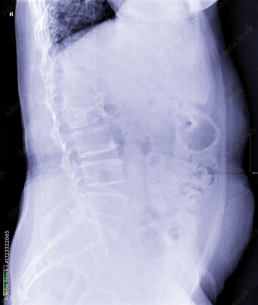Plain x ray showing transverse midshaft left humerus fracture caused by a direct trauma in a car accident, managed by open reduction and internal fixation with plates and screws, selective focus