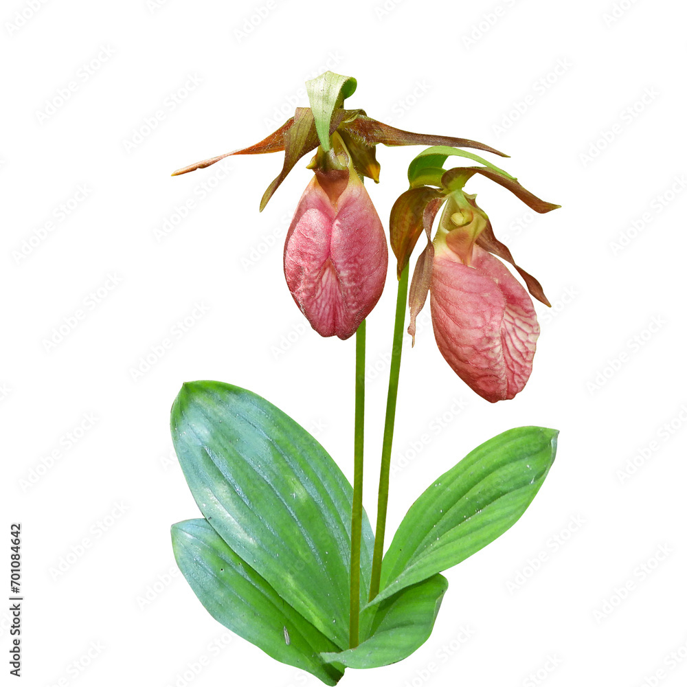 Cypripedium acaule (Pink Lady's Slipper) Native North American Orchid Wildflower Isolate on White Background