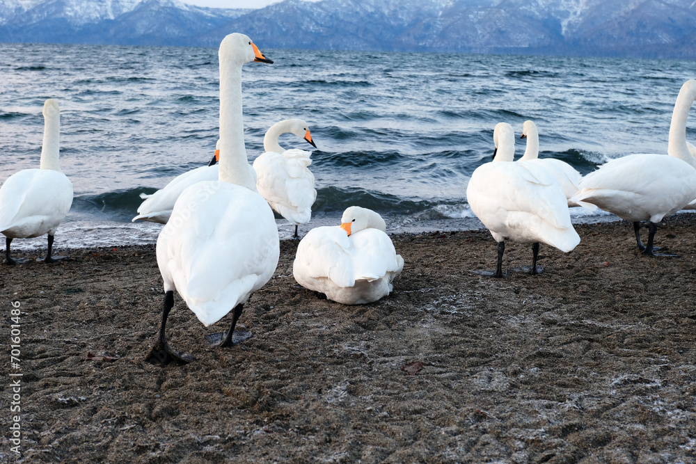 冬の屈斜路湖でくつろぐオオハクチョウ 1