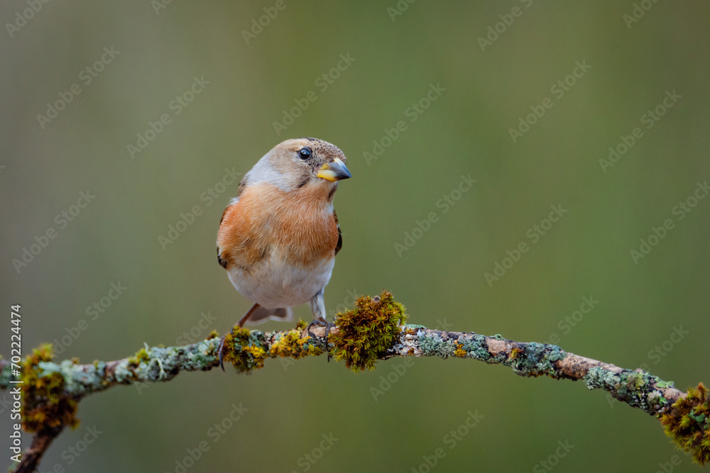 Pinzón real hembra (Fringilla montifringilla) sobre posadero I