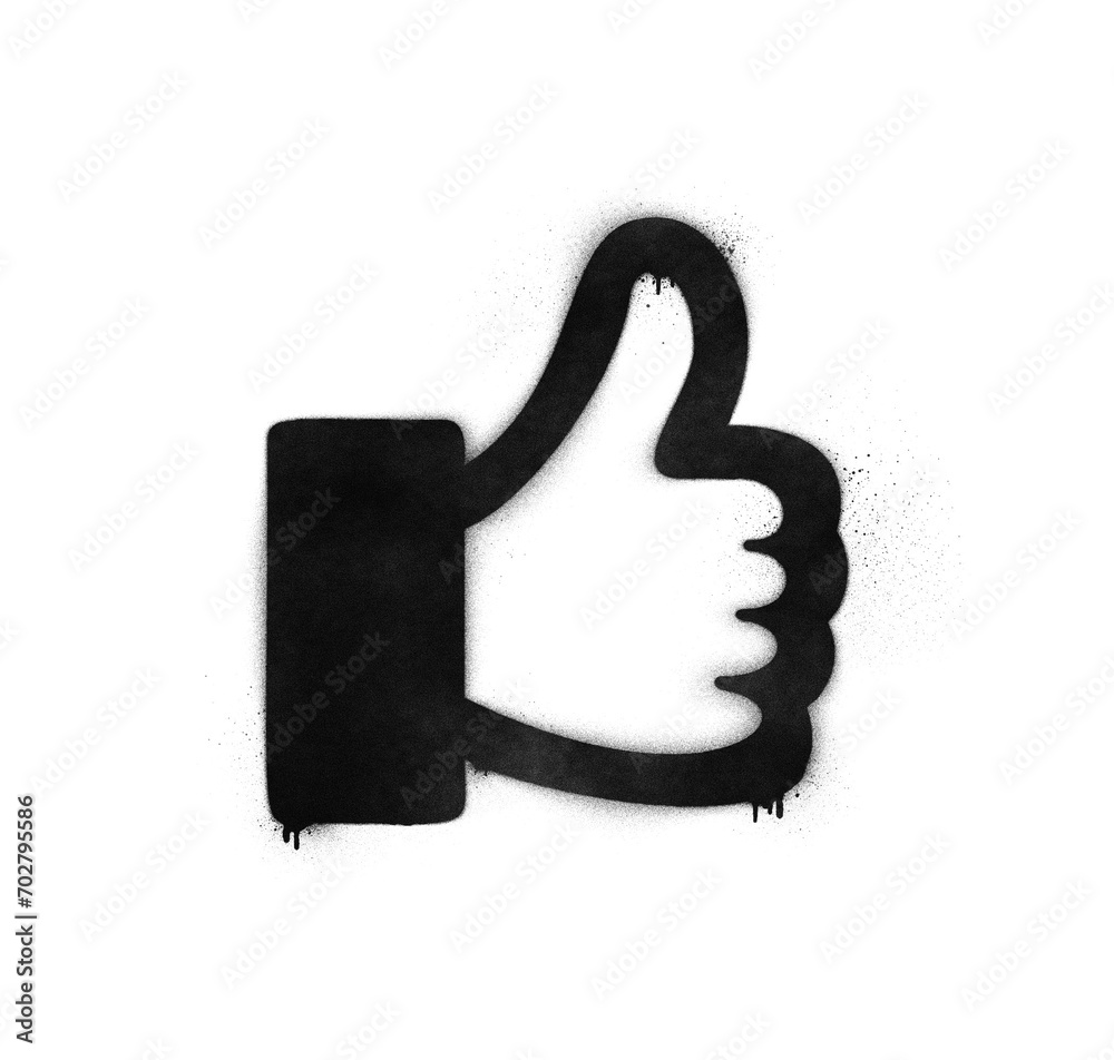 Graffiti-style thumbs up icon stencil with spray paint effect isolated on transparent background