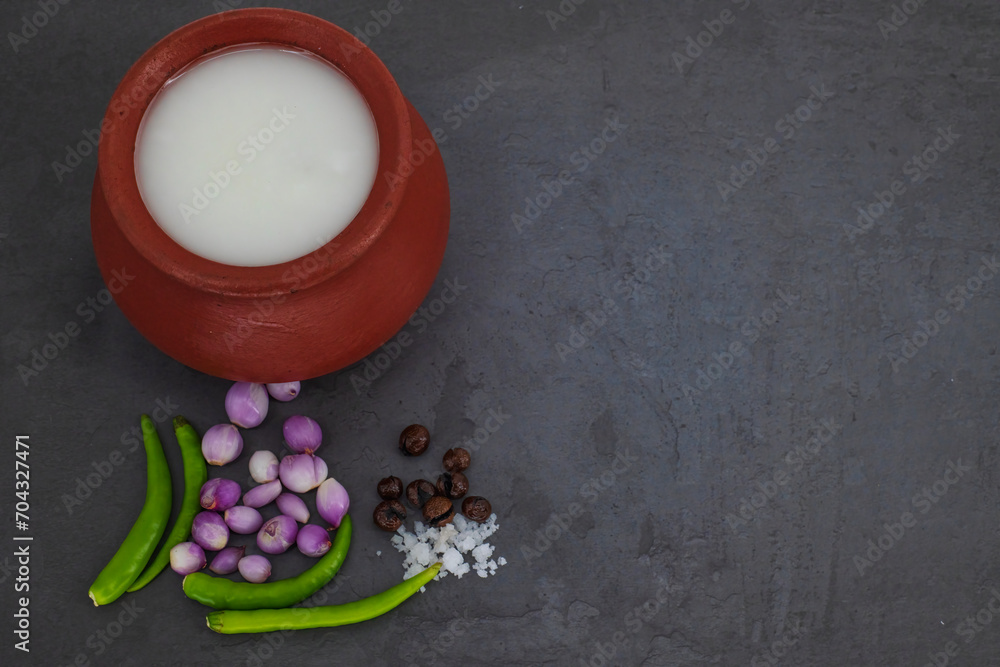 Boiled rice soaked overnight with water and served with buttermilk as breakfast called palaya soru kanji in south india...
