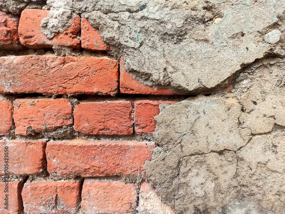 Damaged plaster brick wall