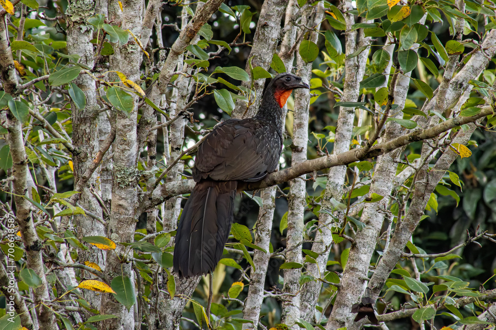 Dusky-legged guan perched on a tree branch against natural background, Extrema, MG, Brazil