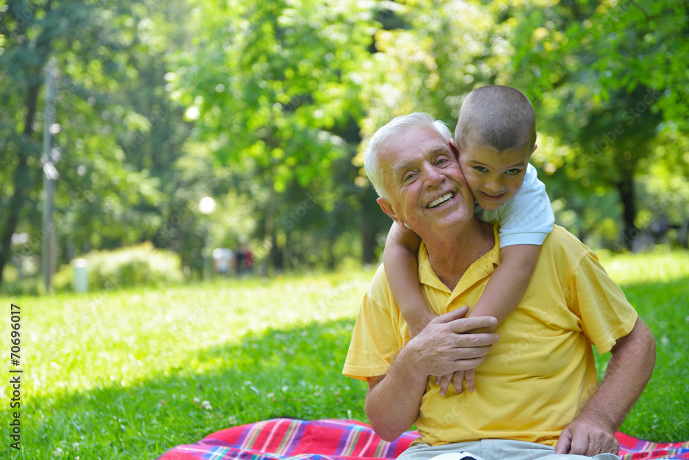 happy grandfather and child in park