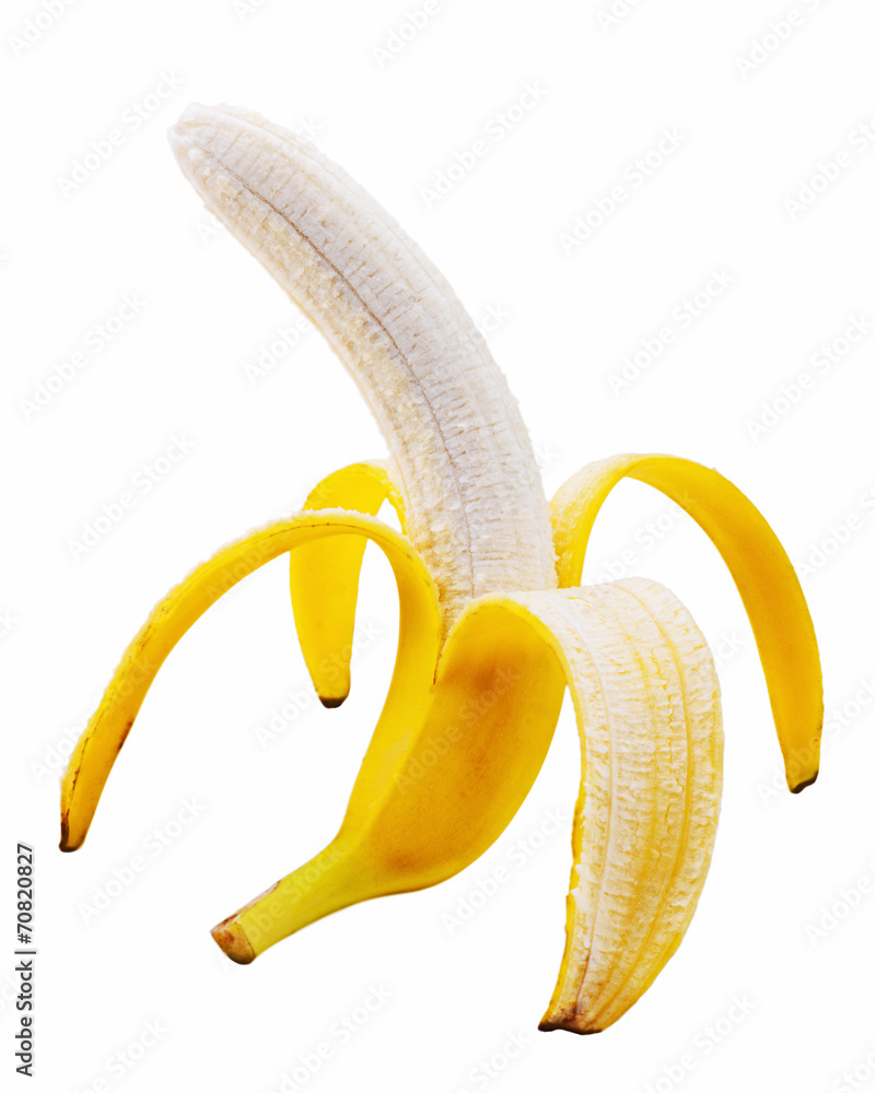 Open banana isolated on white background
