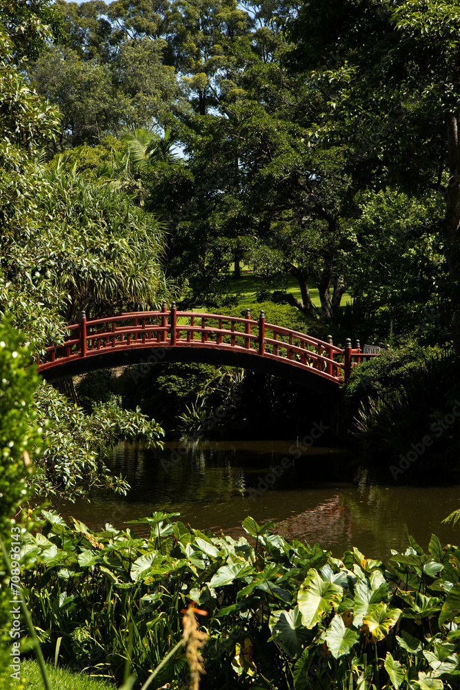 Japanese style arch bridge in botanic garden, Wollongong NSW