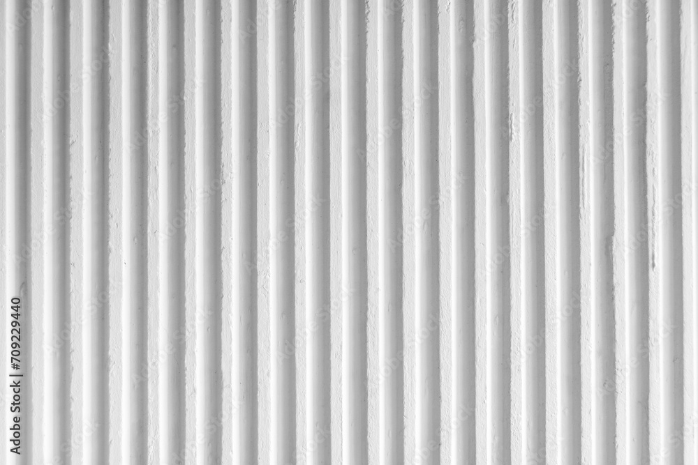 Old white concrete background wall with vertical line ribbed. Stripes as a texture.