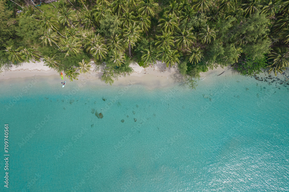 Aerial view of beautiful tropical island beach with emerald water at Koh Kood Thailand.