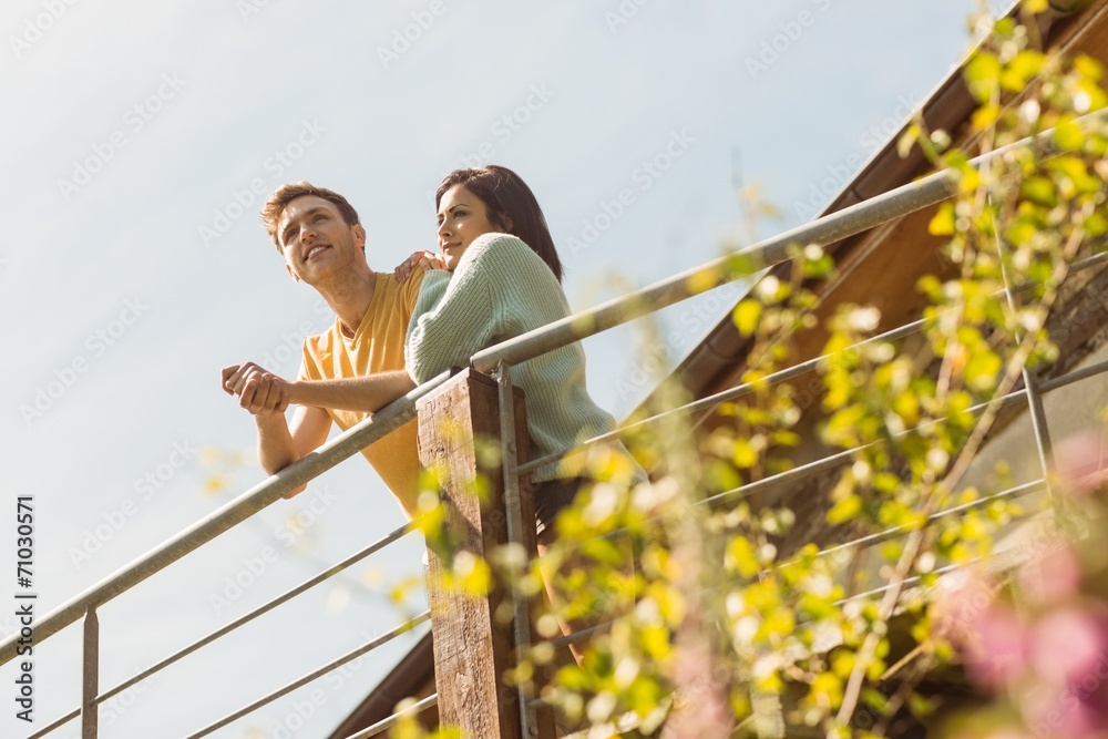 Young couple standing and looking out