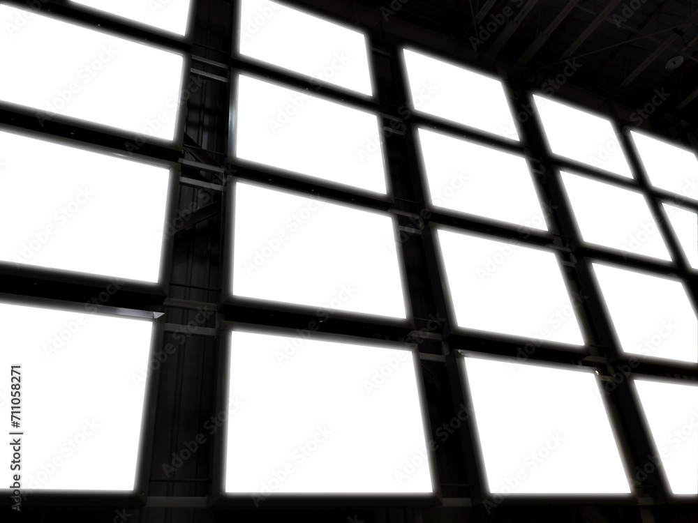 A lot of blank lightbox ads are gathered together. The entire wall is a blank light box