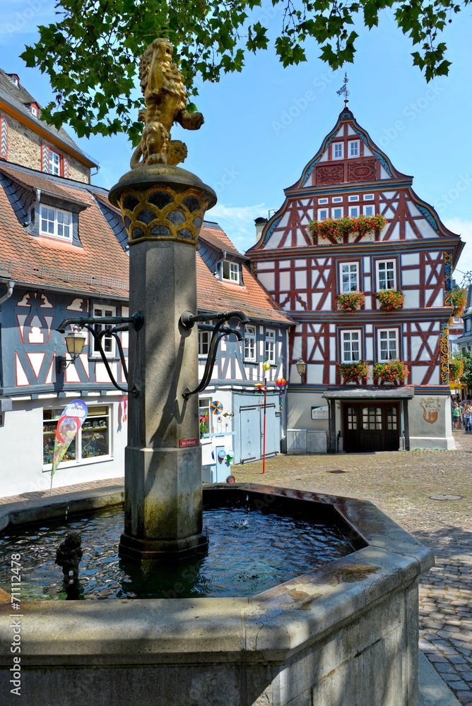 Löwenbrunnen mit Fachwerkhäusern Idstein