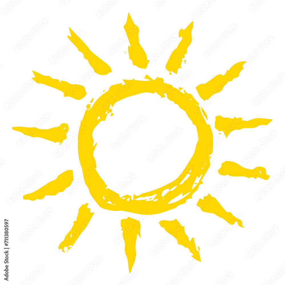 Hand drawn Sun symbol painted with ink brush, png clipart isolated on transparent background