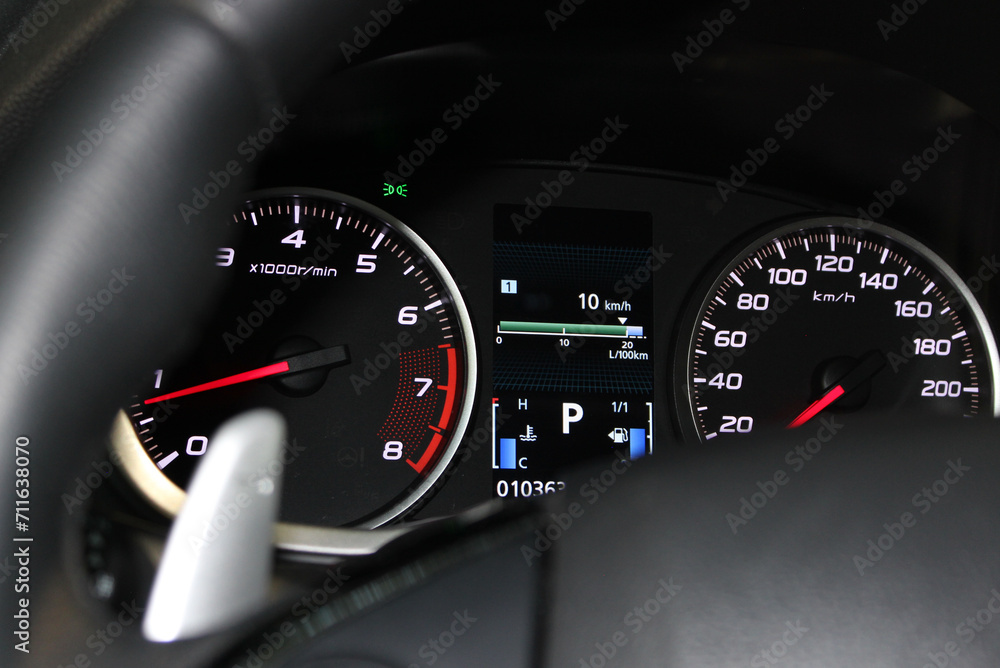 LED backlight of the digitized instrument scale on a dashboard of a modern car