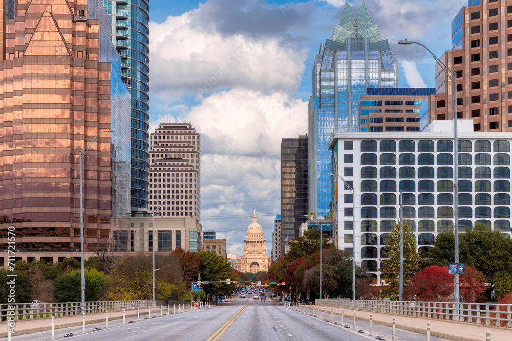 Austin Downtown Skyline with Texas State Capitol in Austin, Texas, USA