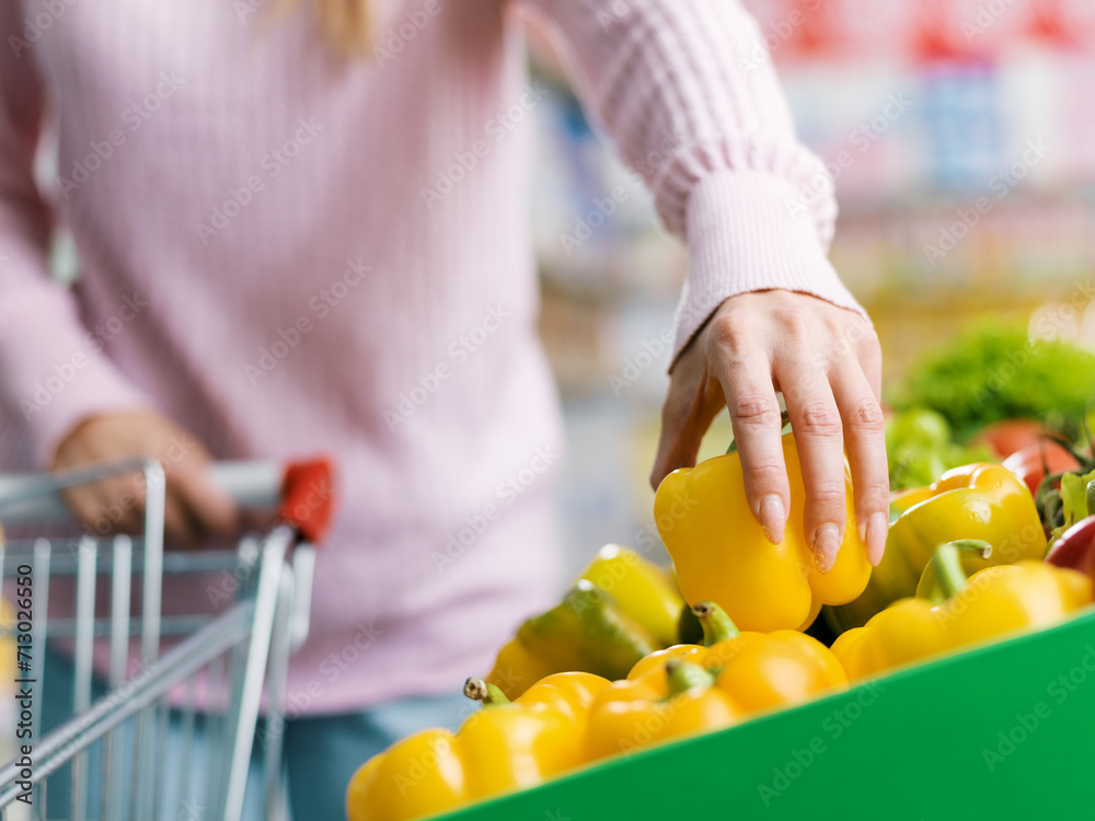 Woman buying fresh organic vegetables at the supermarket