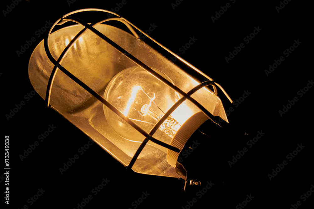 an old lamp shines on a dark background, Lamp night light in a dark background. Vintage effect style picture