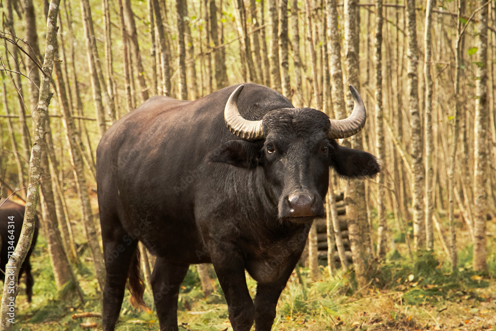 Water Buffalo Roaming in the Natural Forest