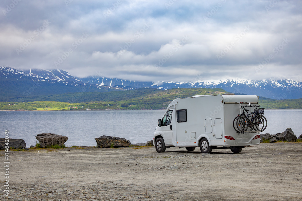 Family vacation travel RV, holiday trip in motorhome, Caravan car Vacation.