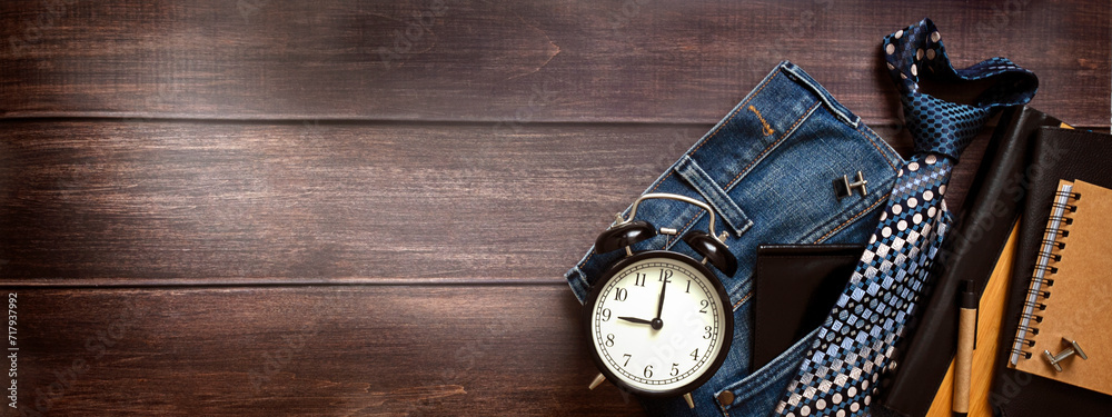 Men's necktie on Brown wooden background. Boss day, valentine's day