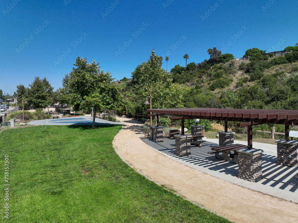 Recreational facilities with table and barbecue in residential community park in San Diego, California, USA