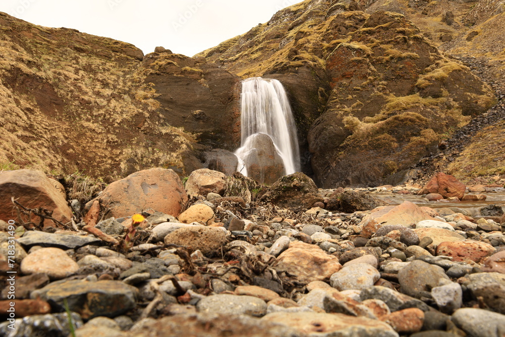 Helgufoss is a waterfall near the capital of Iceland, located in Mosfellsdalur valley
