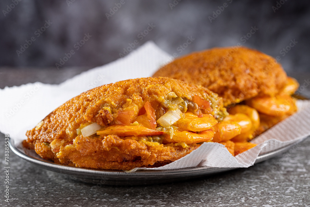 Acaraje. Traditional Brazilian food, made with vatapá, caruru and dried shrimp.