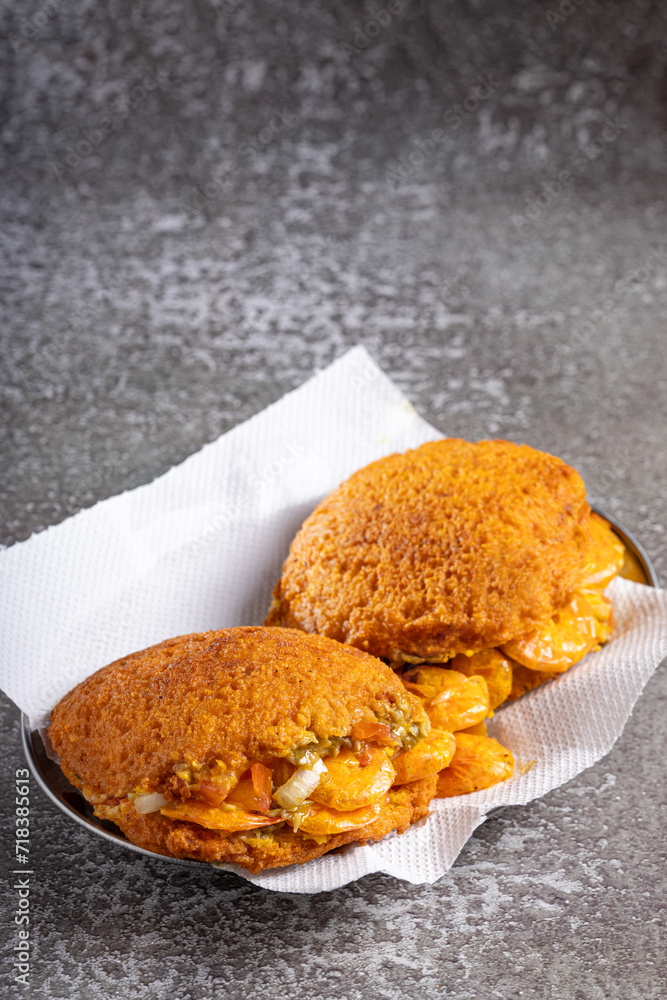 Acaraje. Traditional Brazilian food, made with vatapá, caruru and dried shrimp.
