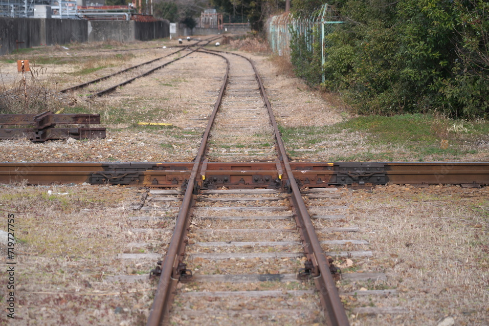 Aichi, Japan - January 13, 2024: Level junction or diamond junction or diamond crossing in Japan