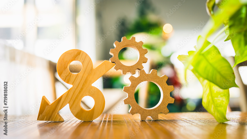 Percentage model and gear model. Key concepts for success, methods, systems of raising or lowering Fed interest rates to correct inflation concepts.