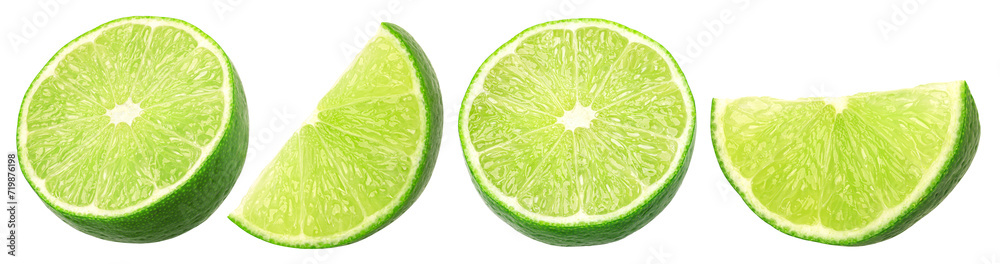 Fresh lime slice and half isolated, transparent PNG, collection, PNG format, cut out, collection.