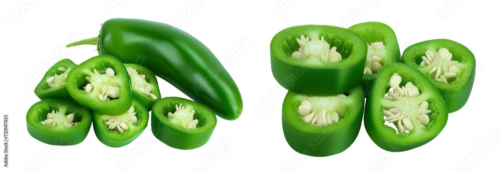 jalapeno peppers isolated on white background. Green chili pepper with full depth of field.