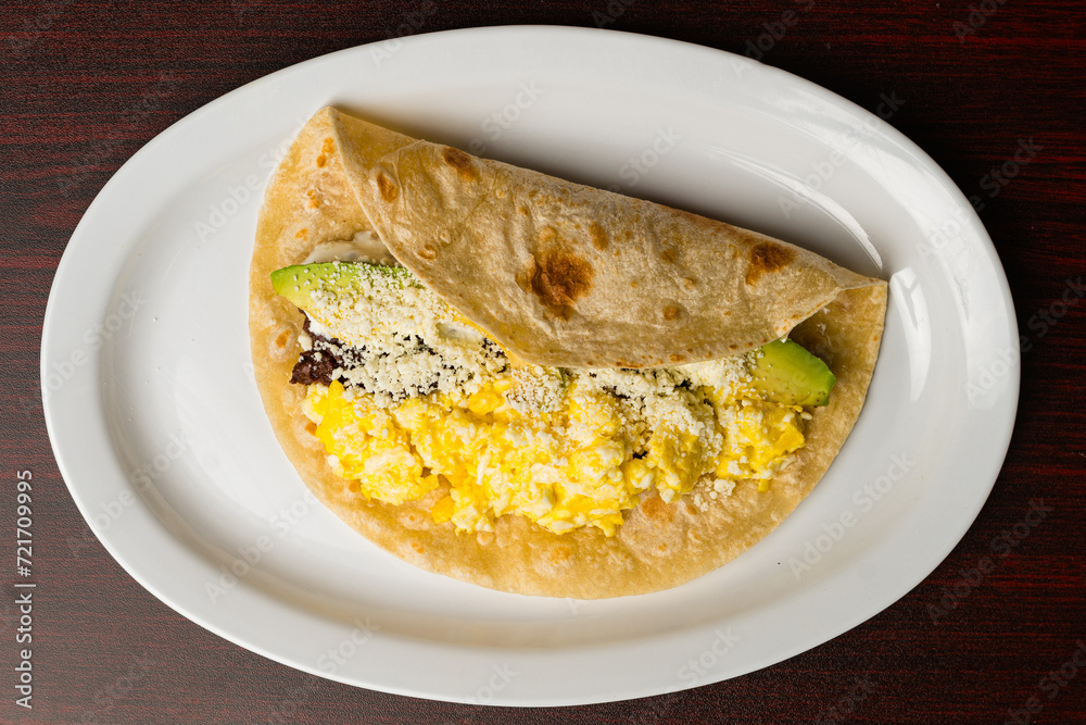 Honduran tortilla with eggs, avocado, meat and cheese