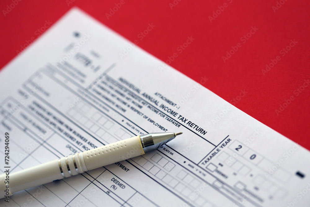 Indonesian tax form 1770-1 Individual Income Tax Return and pen on table close up