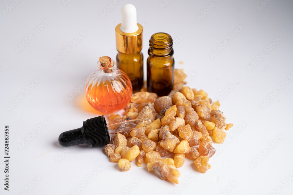 Frankincense or olibanum aromatic resin isolated on white background used in incense and perfumes.