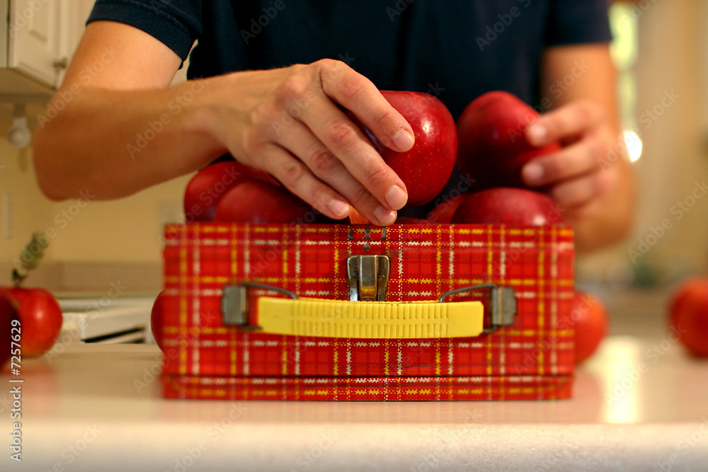 Packing a healthy lunch (Narrow field of focus down middle of pi
