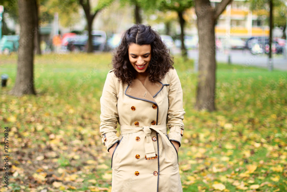 Frau spaziert an einem Herbsttag