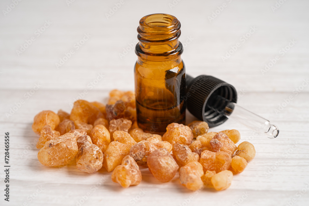 Frankincense or olibanum aromatic resin isolated on white background used in incense and perfumes.