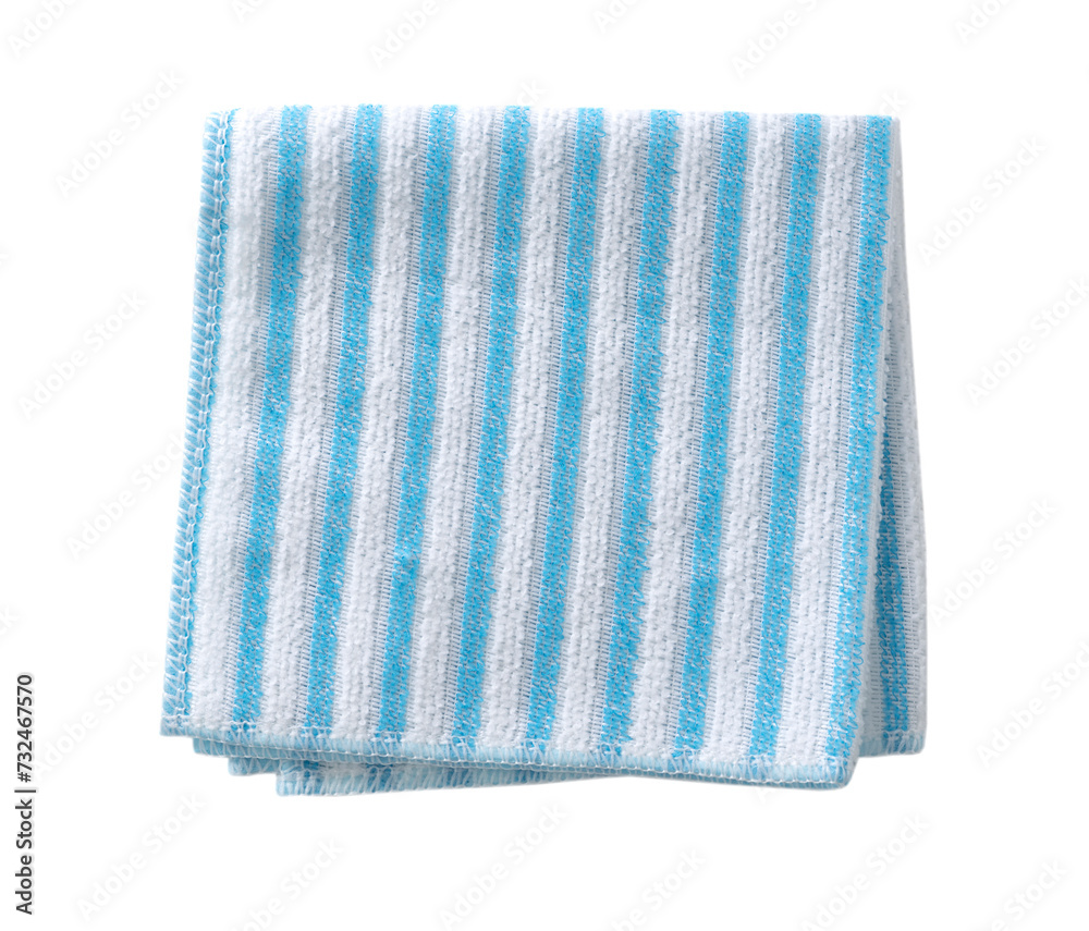 Serviette.White blue bathroom, kitchen square folded cleaning cloth top view. Household napkin. Single object isolated.