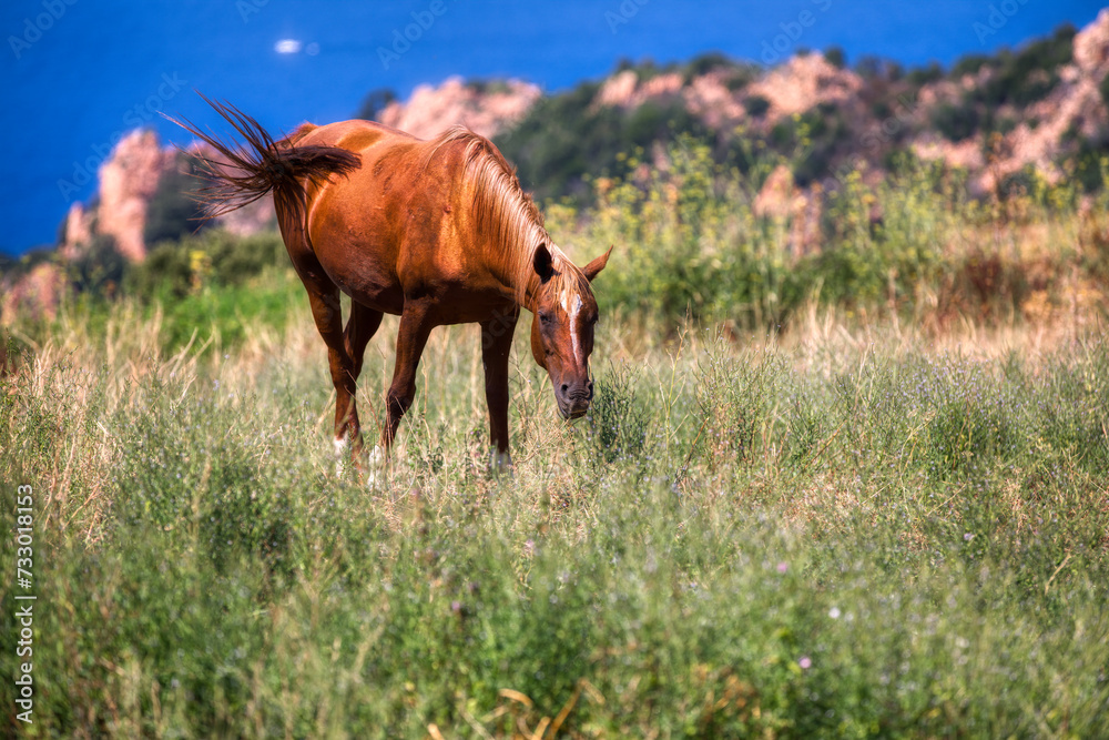 Horse Grazing in a Field Just outside Piana on Corsica, France